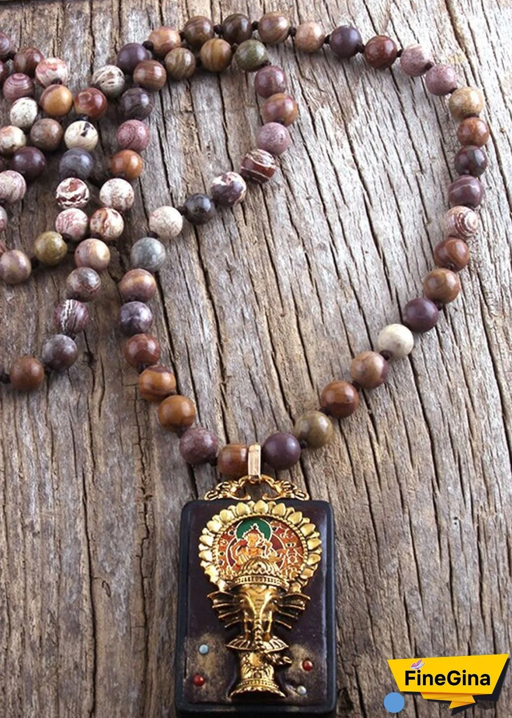 Shop Chic Boho Necklace, RH Precious Lava Stone, Ganesha Buddha