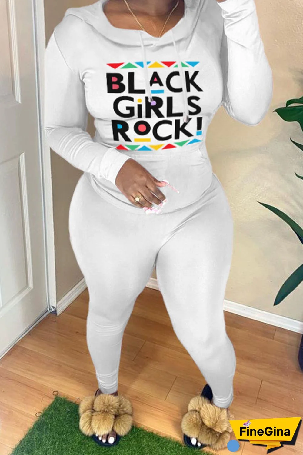 | Product Name | White Casual Print Patchwork Hooded Collar Long Sleeve Two Pieces |