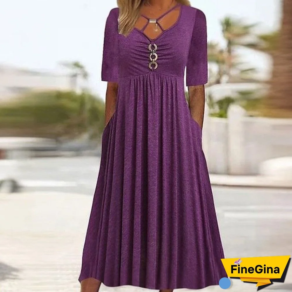 Look your best in this modern Purple Side Pocket Plain Midi Dress. Constructed with 45% Elastane and 55% Rayon, this dress is designed to be both stylish and comfortable. With two side pockets and a midi length, this dress is perfect for any occasion.
